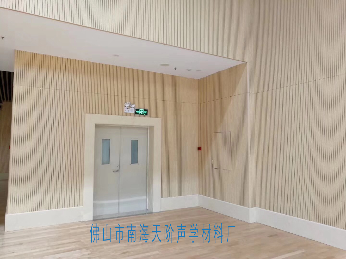 番禺中心醫院球館工程使用了1000方的槽木吸音板,安裝在墻壁,不僅美觀。對各種頻段的吸聲效果的很明顯,可以有效避免回聲。
