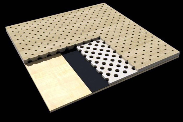 2.孔木吸音板是一種在密度板的正面、背面都開圓孔的結構吸聲材料。兩種吸音板常用于墻面和天花裝飾。