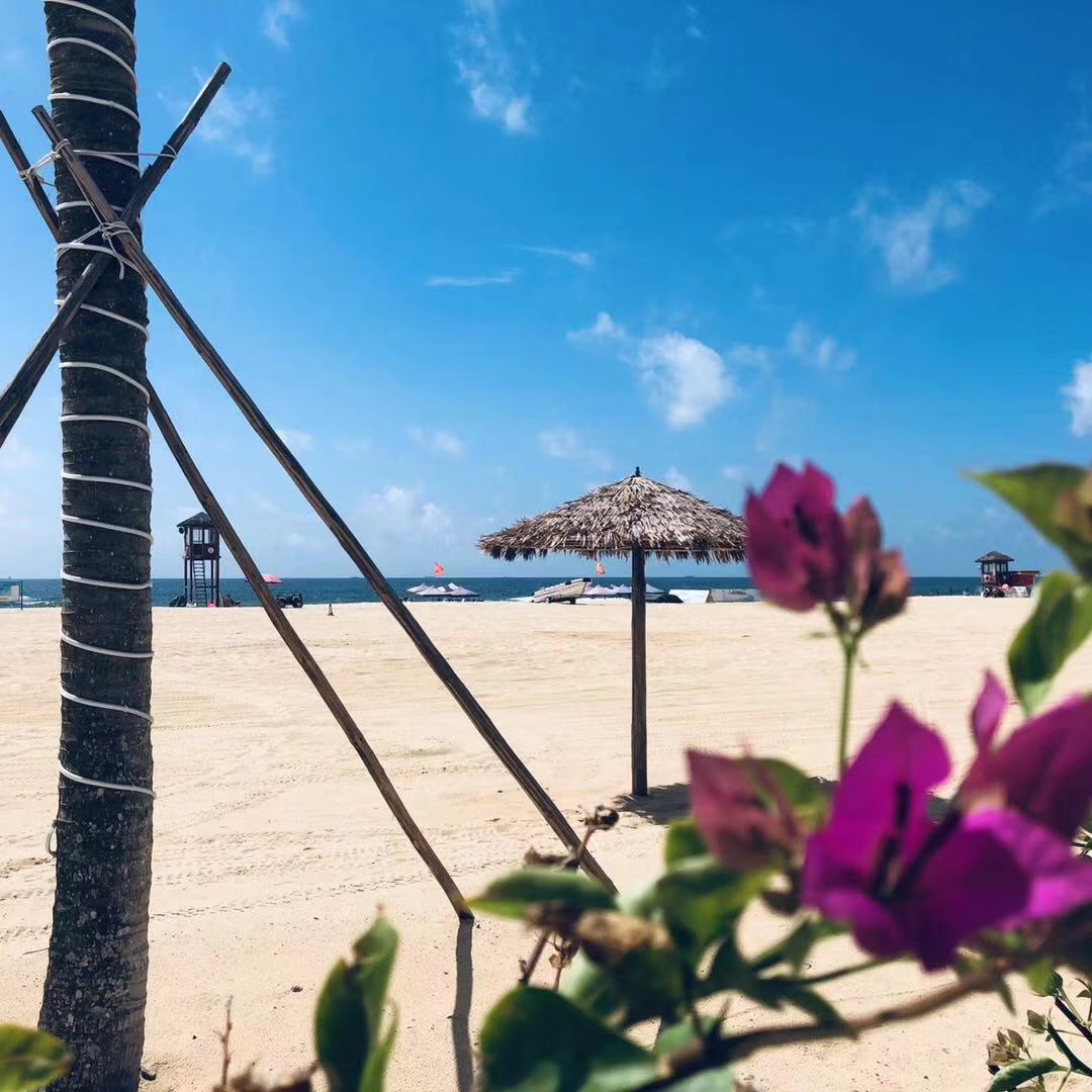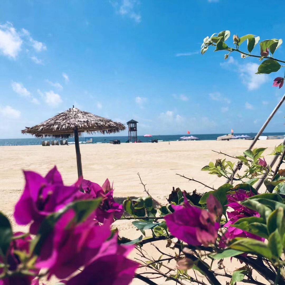 一到陽(yáng)江,我們就喜歡上這個(gè)城市了。八月的陽(yáng)江,幾乎將所有的柔情蜜意都揮灑在大角灣的沙灘上。在這里,天空和白云如此接近。