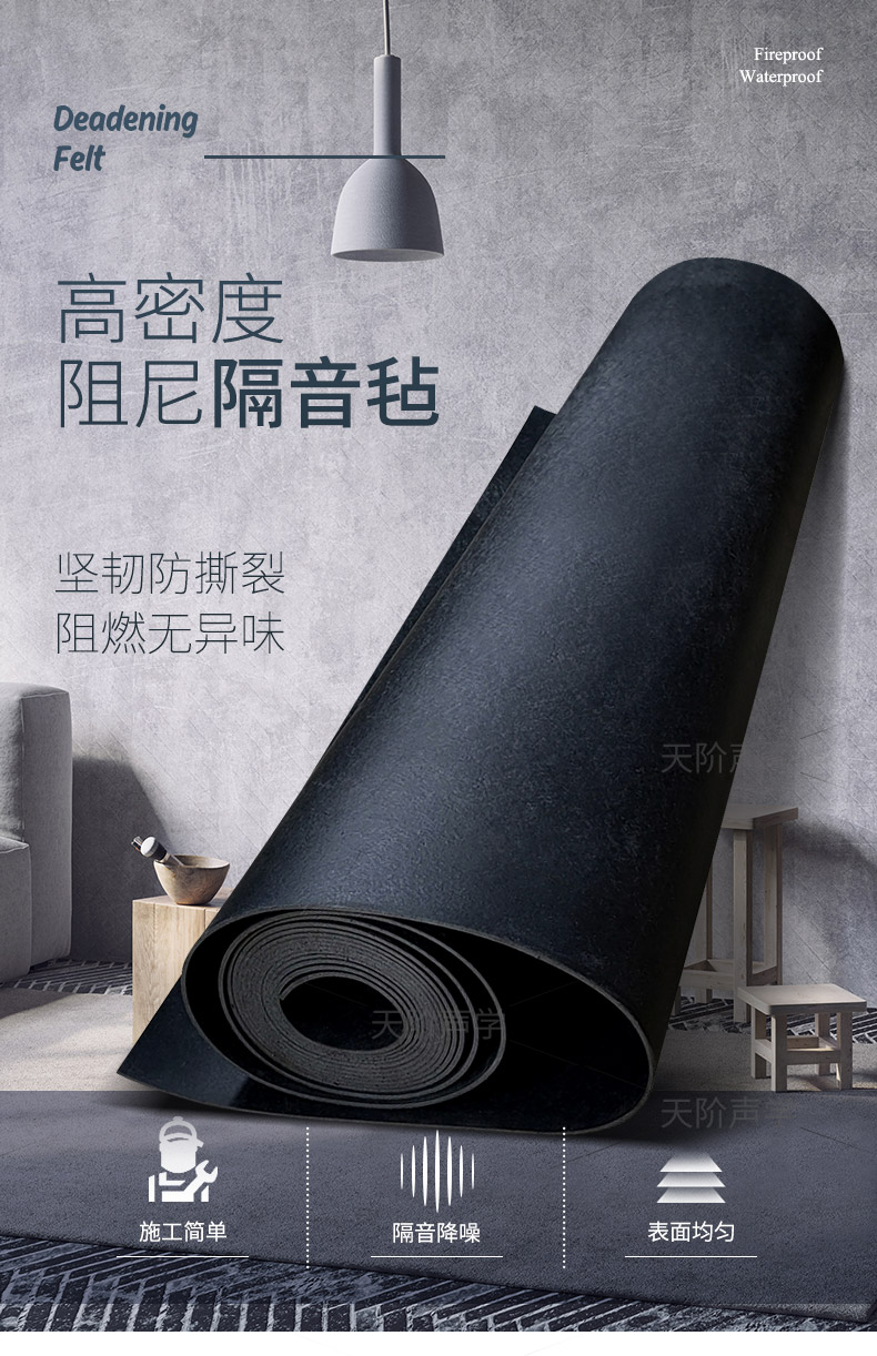 阻尼隔音氈以高純度精細(xì)鐵粉為原料,應(yīng)用新的減震隔音技術(shù),開發(fā)研制出針對地板、墻壁、管道的隔音材料。能夠有效地阻隔外界的噪聲,營造一個(gè)安全、安靜、舒適的環(huán)境。