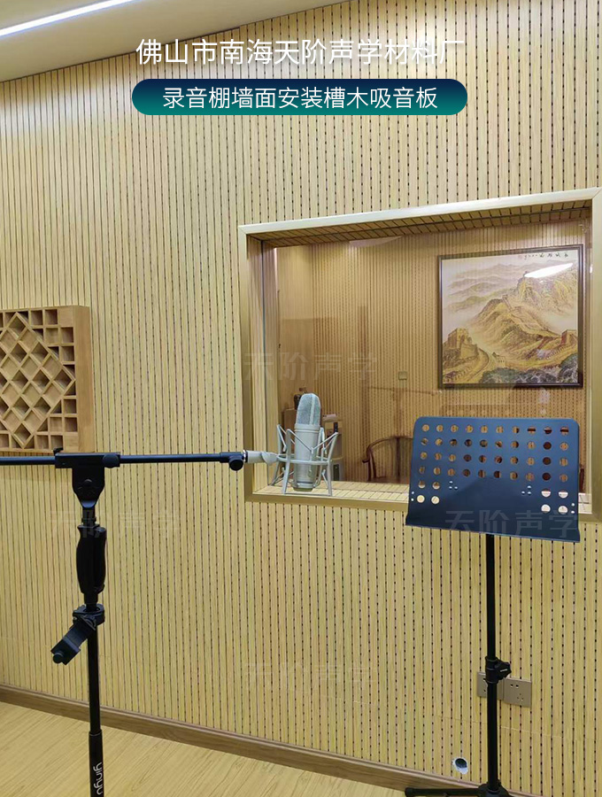錄音棚墻面安裝槽木吸音板