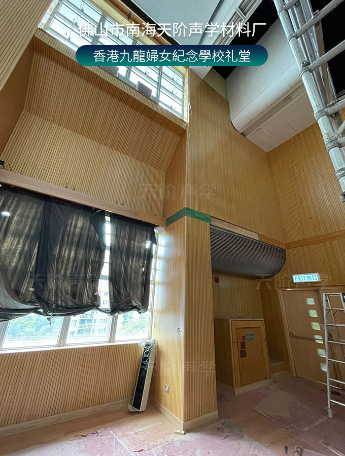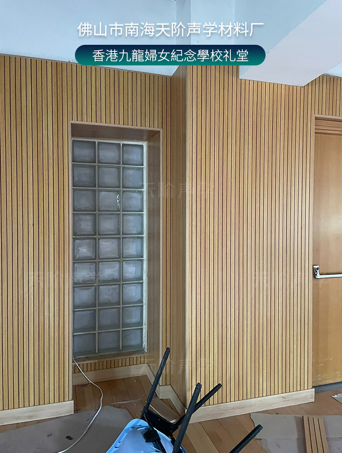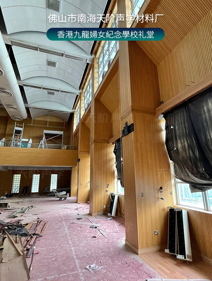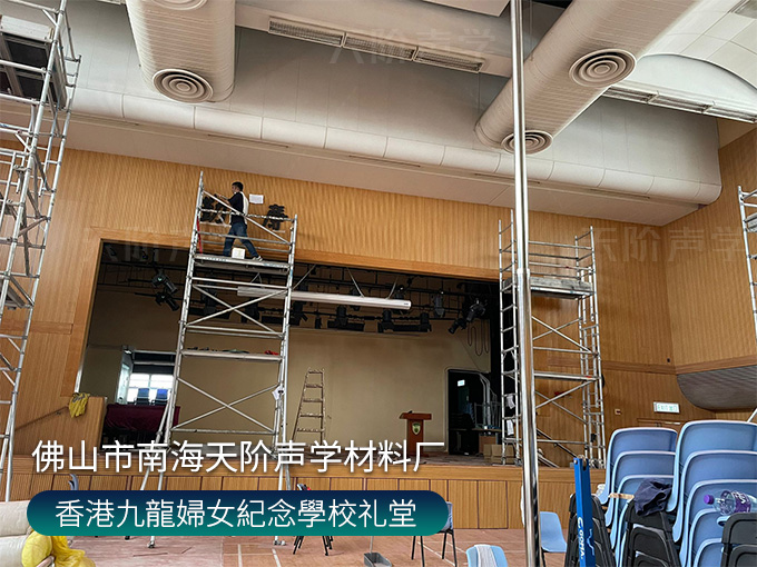 香港九龍婦女紀(jì)念學(xué)校禮堂,墻面安裝木質(zhì)吸音板
