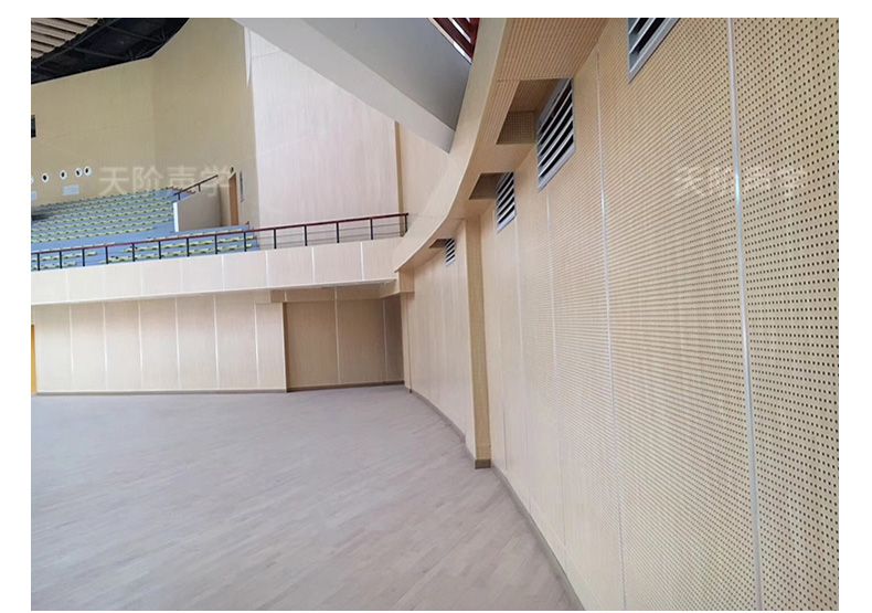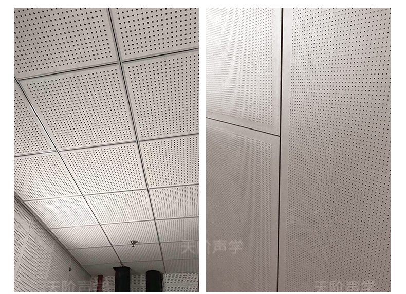 孔木吸音板是一種在密度板上直接穿孔的共振吸聲材料。孔木吸音板對吸聲頻譜選擇性較強,對低頻有很好的吸聲性能。如在吸聲結構后空腔上填入適量的吸聲棉可提高中、高頻吸聲效果。