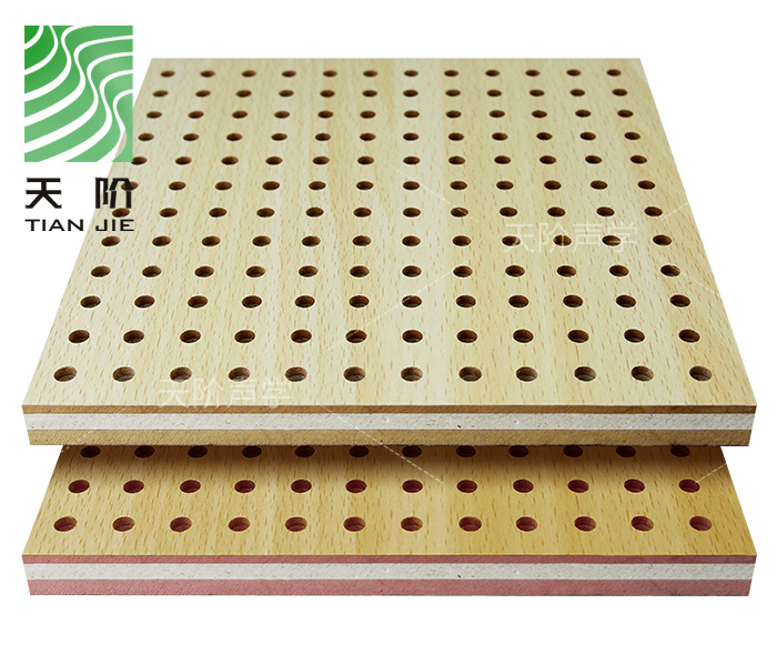 天階聲學孔木吸音板采用高質的中纖板、具有環(huán)保、防火、防潮等性能,飾面顏色及材料選擇性廣,能很好地滿足客戶多樣化的聲學及裝飾需求。較槽木吸音板,孔木吸音板相對抗撞擊能力強。